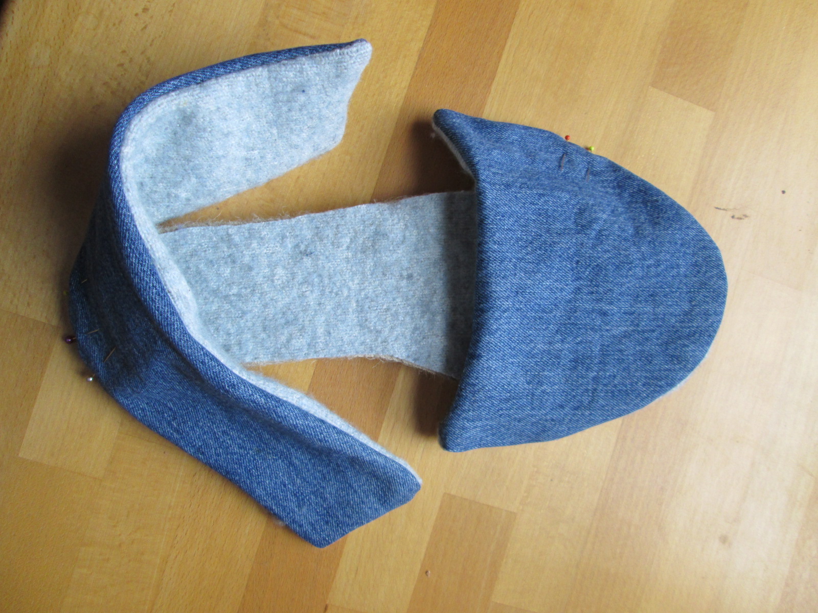 Sind leider zu groß geworden, aber ich war zu bockig, das anzuerkennen und habe mir trotzdem die Mühe gemacht, Sohlen aus Waschleder drauf zu nähen. Hat Spaß gemacht, denn ich habe erst einen Abdruck meines Fußes gemacht und den als Vorlage benutzt. Sie rutschten auch nicht auf Holzboden.